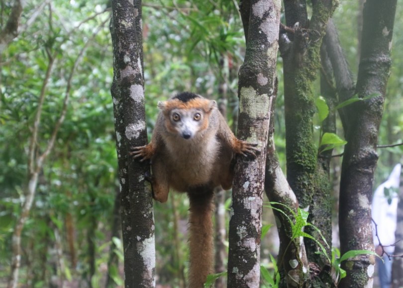 We walk through the forest and go back to the area where the indris are and they come down again to eat bananas with their soft hands. The feeding of the indries concludes our tour of the resort and it has become time to get out of the wet cloths and have some lunch.