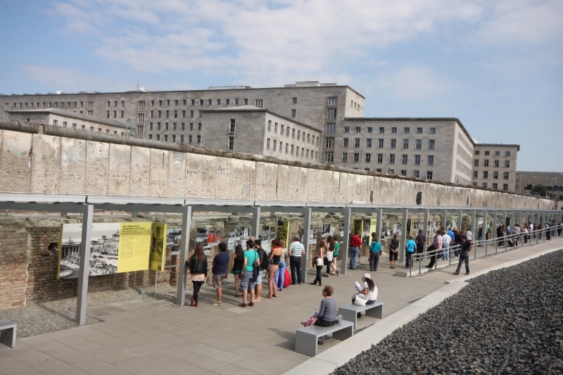 The museum is located at the site of the former SS Reich Main Security Office which was the headquarter of some of the worst parts of the Nazi regime oppression system namely the Sicherheitspolizie, Sicherheist Dienst (SD), Gestapo and Eisatsgruppen. The buildings were severely damaged by allied bombing in the early part of 1945 and after the end of the war the ruins were demolished. This was the border between the American and soviet sector of berlin so when the wall came up the communist regime raised the outer wall next to the current memorial.