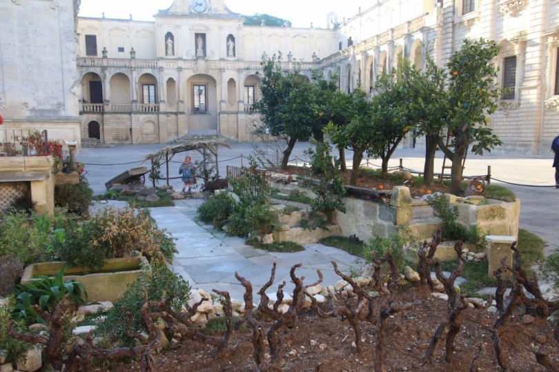 Within the old town of Lecce you can head for the Piazza del Duomo which is one of the prettiest squares inside the old town. The square is surrounded by several amazing baroque buildings and it is a sight in itself. Visiting during close to Christmas you will find a pretty big nativity scenery build on the middle of the square – it is pretty elaborate and must take quite a bit of effort to create each year.
