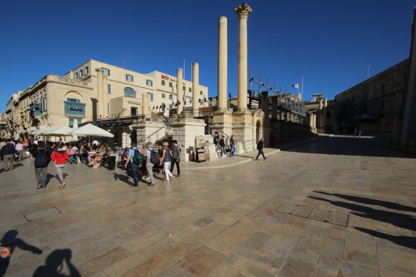 The first thing we see when we get inside the old town is the big parliament building and just after this we reach the ruins of the old theater. The building like much of Valetta was destroyed by German and Italian bomb since Malta and in particular the harbor around Valetta was an important British base disturbing the transport from Italy to Rommel’s troops in North Africa. It has been decided not to rebuild the theater and leave it as a reminder of the hard time in Valetta history.