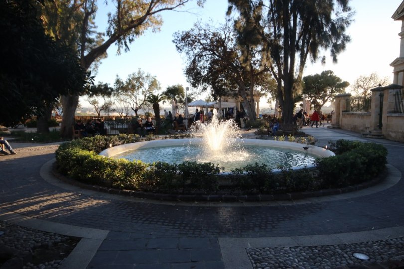 We go around a couple of the side streets of Valetta passing the main church of the city. At the edge of the town is a small garden with a terrace with a view across the water where you can see Victoria. The garden is the Upper Barrakka Garden and right below the garden you can see a saluting battery which apparently sometimes does give gun salutes and you can go down and see it for a price – but we are not going down for the firing of the guns. I think it was earlier in the days anyways. The garden is a nice place to rest and enjoy the view and the relative quiet of the garden.