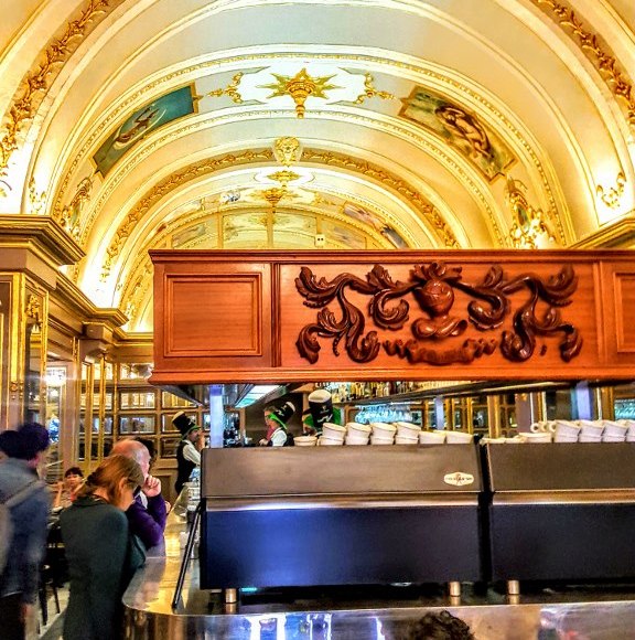 I love the chocolate cakes selection, it has a wide variety and taste yummy. You will be spoil by choice. Downside of this place is really packed with local and tourist who come to visit or just to admire the ceiling of the café. Unfortunately not much seat available, so you have to fight your way to find a table. Price wise, it is kind of expensive. Chocolate dome cake cost €10 per piece. Yes… taste was delicious.