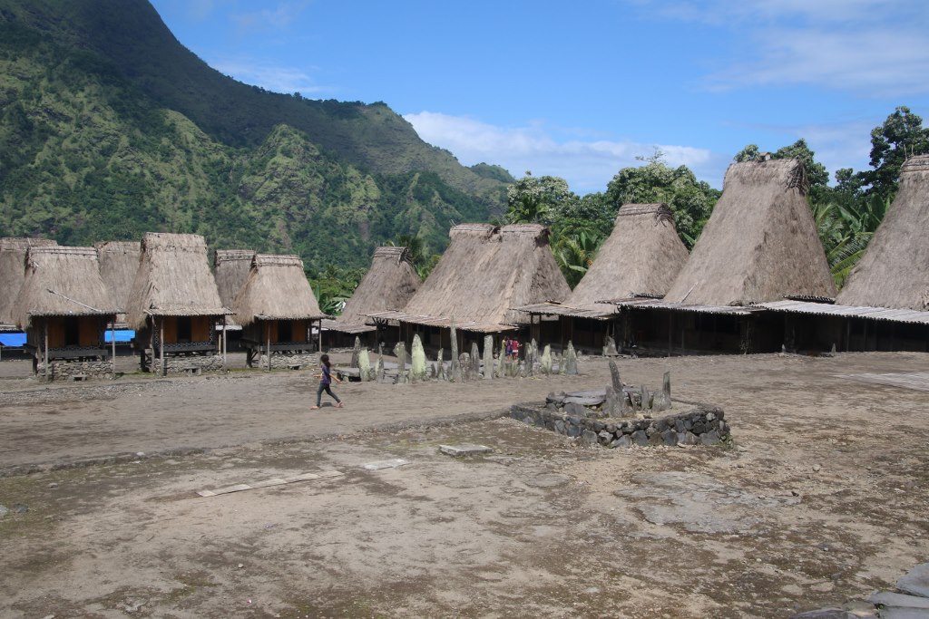 We start out in the village of Bena which is the most famous of the traditional Ngada villages. It got a lot of traditional huts with their thatch roof. There are a lot of huts which are lined up on each side of a large village square. Some of the huts have different decorations on the top of the roof – they indicate different statues of the clan who live in that particular house.