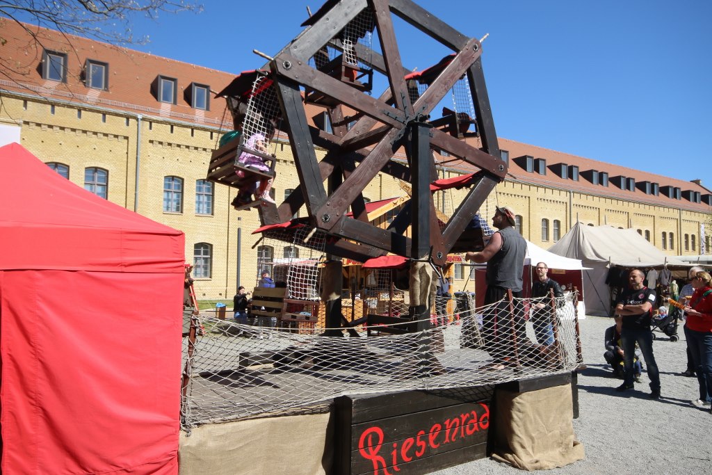 We take the U-bahn to Spandau to go and visit the old citadel in the city. We didn’t realize this would involve a bit of time travel. We got to the old citadel in Spandau and wanted to go and get out tickets to enter. But we didn’t even make it to the official ticket counter before we had to buy a ticket. Apparently the citadel is transformed from a museum in to a medieval fair every year for Easter time.