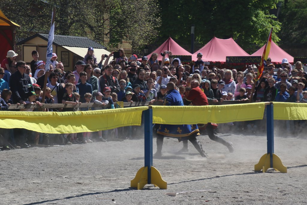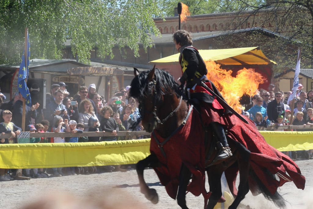 There is different entertainment like traditional music – which might be a bit modernized at times with electricity. And people juggling. There are also different rides for the kids which are power sole by human power with adults pulling the kids on the merry go round and the small ferries wheel. The highlight of the entertainment is a knight’s tournament where four knights are fighting for the glory.