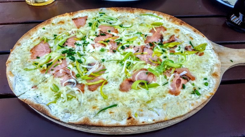 Nothing like eating with a view! I wish I could reach through the screen and take a piece of that salmon flatbread- YUM!