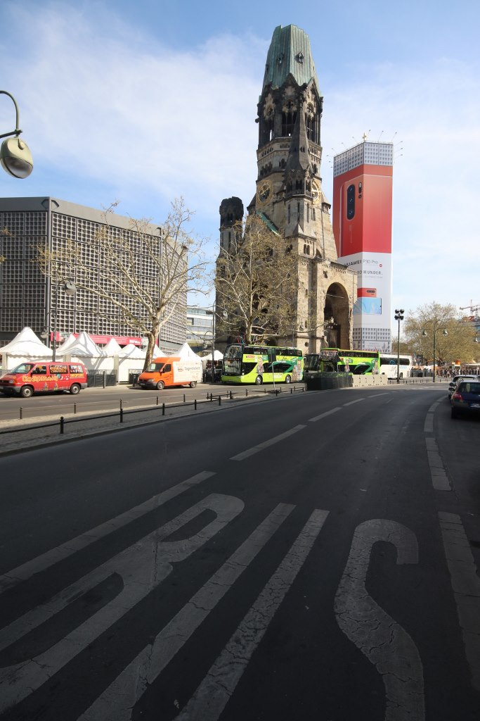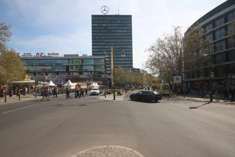 The street ends at the Kaiser-Wilhelm-Gedächtniskirche where you also find one of the symbols of West Berlin the first skyscraper of the city which stand at 103 meters with a big Mercedes star on the top – it was the symbol of the wealth and confidence of the western part of the city.