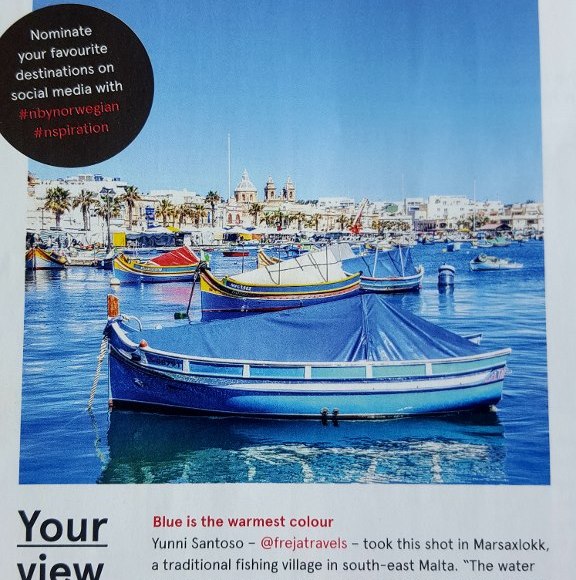 So we wrote back and he asked for a high resolution version of the photo and said it would be in Norwegian magazine for April. April arrived and no photo in the magazine. Then suddenly in May a letter arrived from the UK with a copy of Norwegian magazine – and right there on page 136 was the photo of the boat in the harbor of Marsaxlokk.