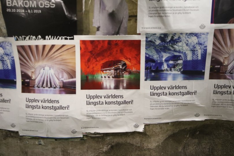 We head back on the subway to go and explore the center of Stockholm a bit for the day. We arrive at Kungsträdgården station there is actually a bit of an art exhibit down here at the station so we take a quick look at the art before we take the long escalator up to the surface.