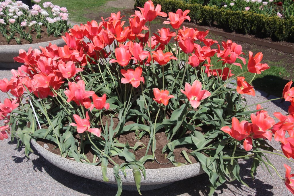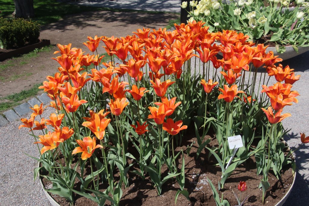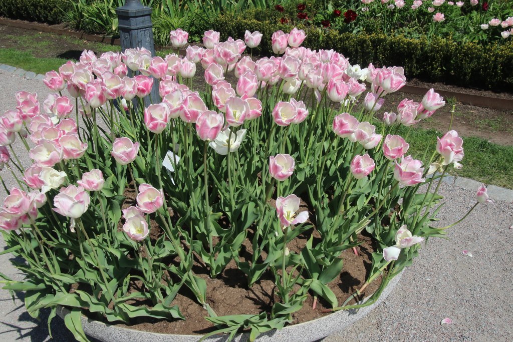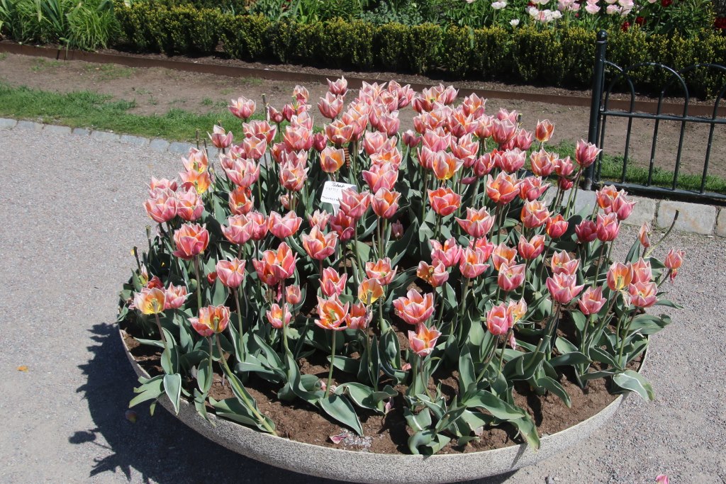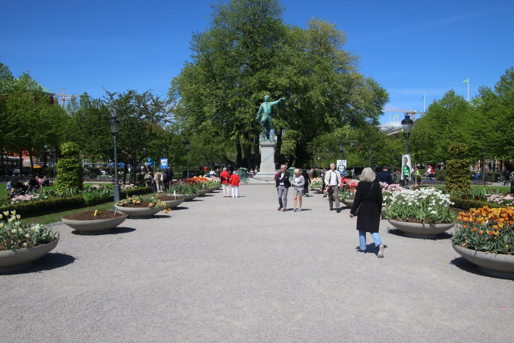 Next to the opera house is a small river and a few boats down there which go to different destinations – I guess you really ought to get out on the water during a visit to Stockholm but for some reason we end up missing a trip on the water. We walk to a park next to the opera house which goes all the way down to the water – here is a selection of different tulips in large pots dominating the entrance to the park. They do look pretty nice and it is good to spot these spring flowers of different varieties.