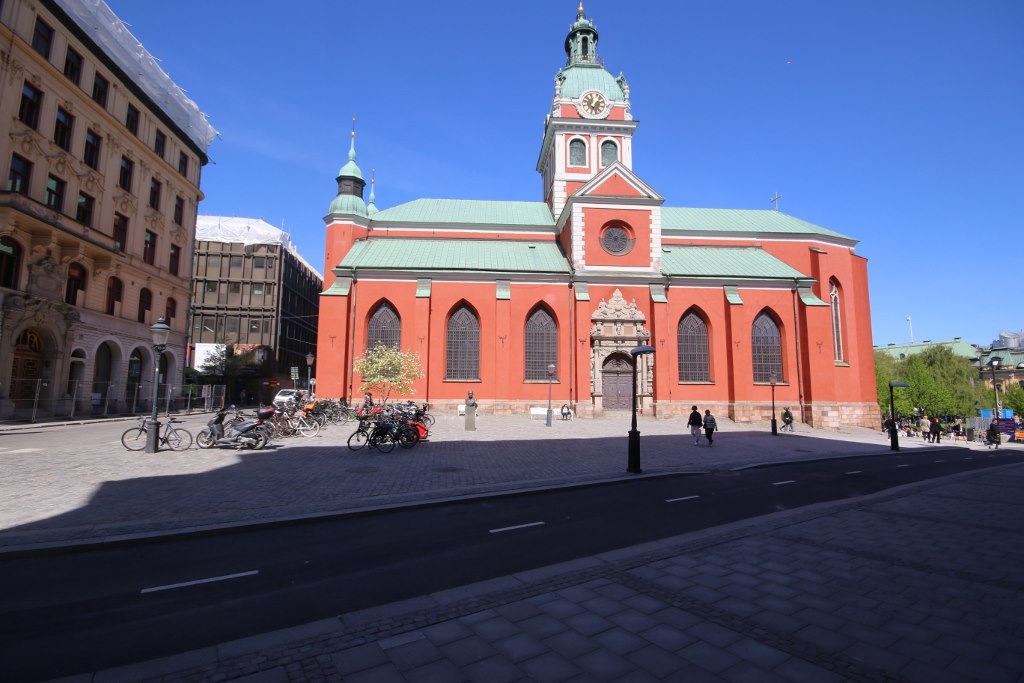There are a nice church next to the park with bright red colours and a few other nice buildings in the area. We haven’t walked very far but we have walked pretty slowly so time has passed and it is time to make it back to the opera house for a nice Stockholm lunch.