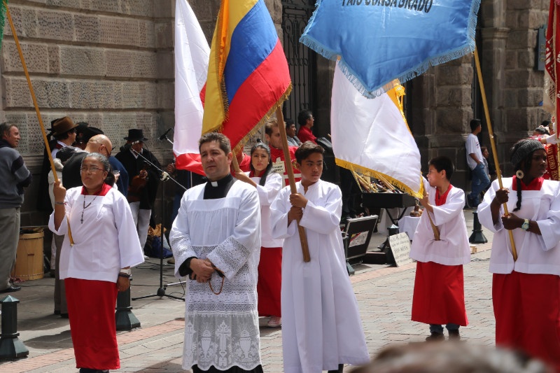 It doesn’t take long before there are some distractions to the explorations of the city. There is a huge parade going through the streets of Quito with a lot of colourful people dancing in the streets of town. The parade is fun to watch and it just seems to go on forever. Hence the exploration is a lot less extensive than expected. The parade seems to be an annual event being held by the church to mark the winter solstice which apparently is on the 20th of June down here south of the line. So why is it held on the 19th? Well it seems like they want a crowd to come out and watch the parade which is much more likely to happen if it is held on a Sunday than a Monday – hence they moved the parade up a day.