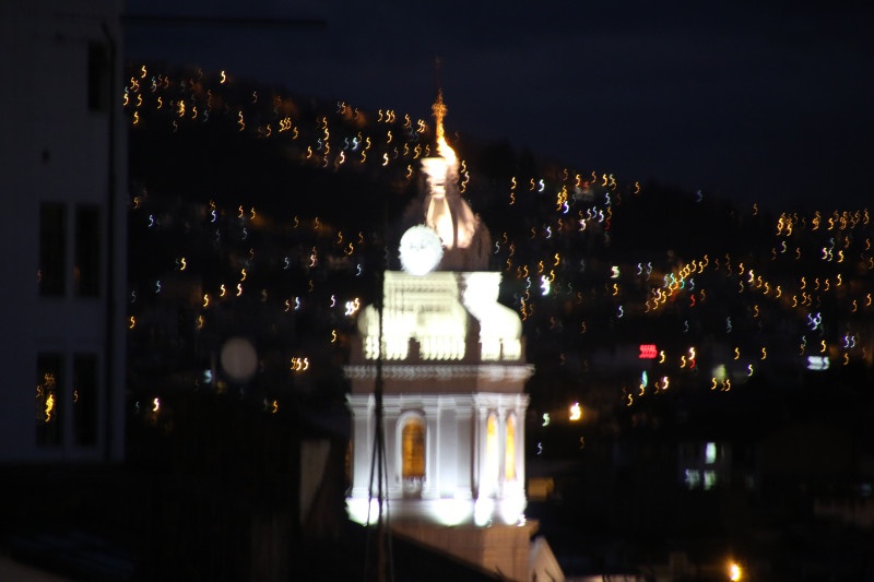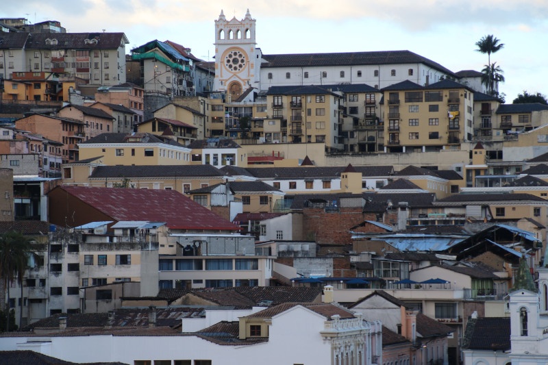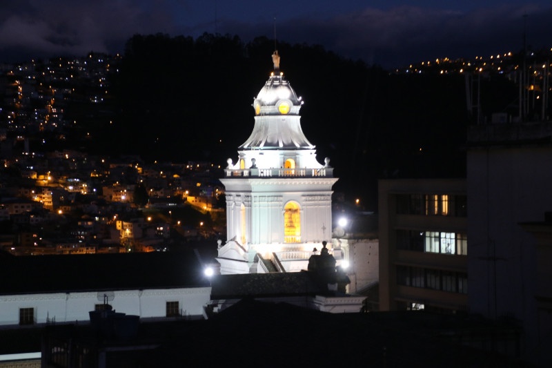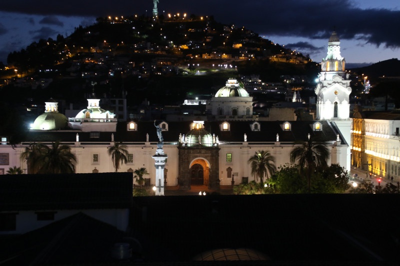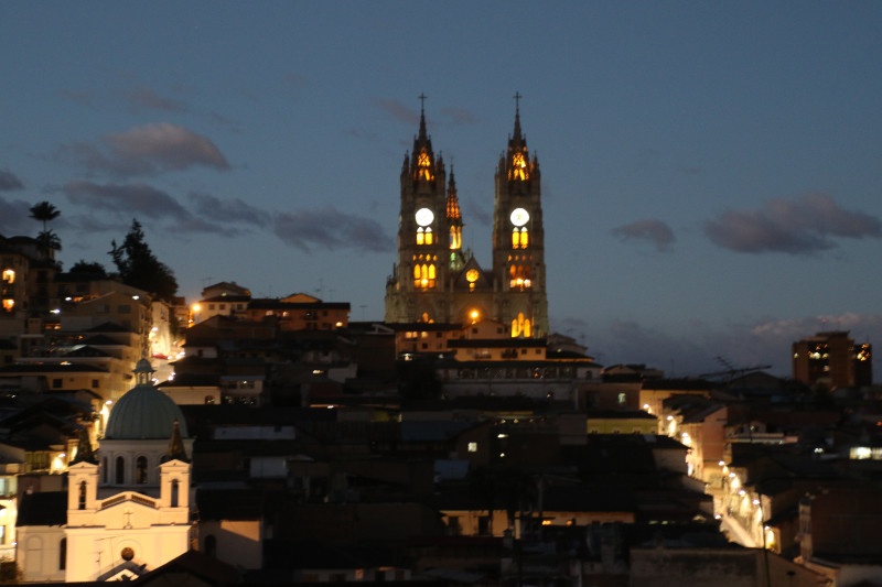 We didn’t leave all that early from Mindo and with the long taxi ride from the outskirts of Quito we arrive a bit late at the center of town. So there isn’t much time for last minute exploration – we just have a quick look around and buy a few supplies for the next day. And then we head for a restaurant just behind the central square. The Vista Hermosa is a nice restaurant but the best part of eating here is the view of the city which we enjoy before during and after the meal.