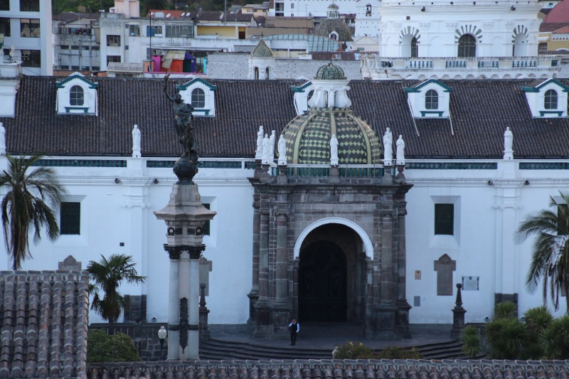 When we get closer to Quito the weather change from rain to sunny and dry. We get to the city – or more precisely the bus station far away from the center where our hotel is located. So we get out of the bus and into a taxi and then it is off to the hostal in the center of the old town of Quito.
