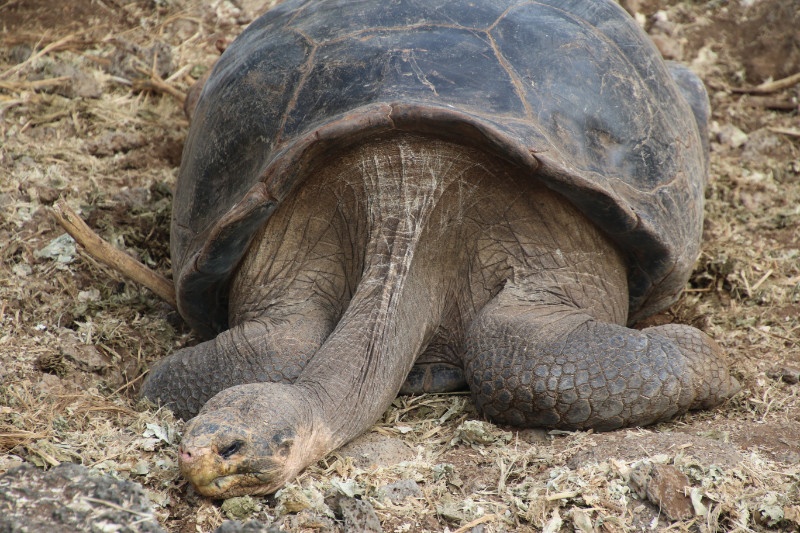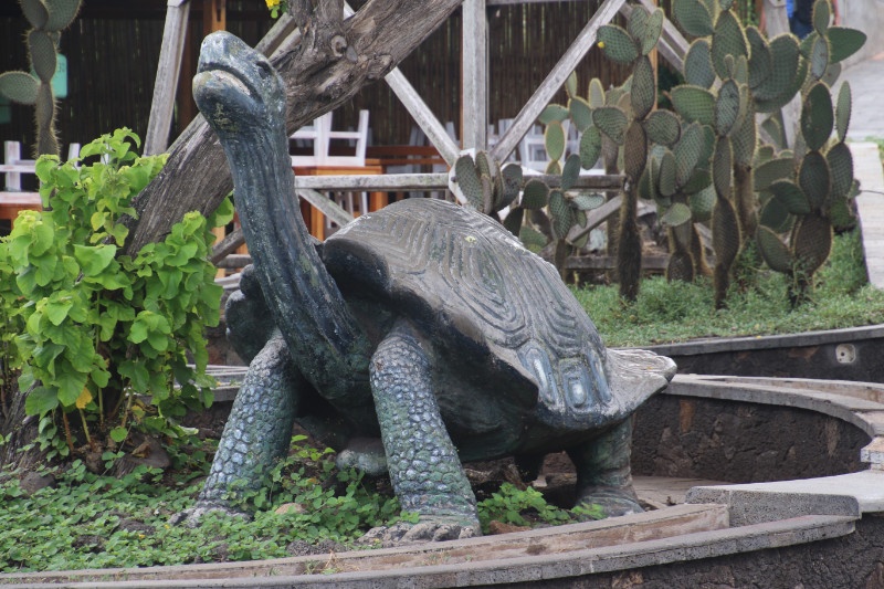 The harbor also attracts a lot of other birds including several frigate birds – so we hang around for a while looking at the costumers at the market and the other birds are flying around the area. From the fish market we walk a while along some not so interesting road until we reach the Darwin research station which has an exhibition of the natural history of the Galapagos and also is the home of a breeding center for giant turtles and land iguanas. We have a look at the different animals and the plants at the area before we head back out.