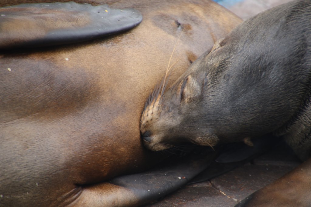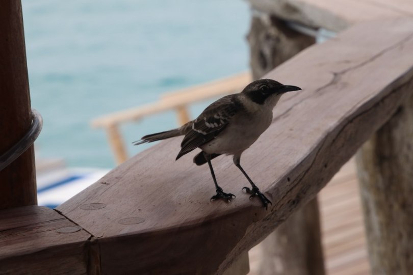 We have an easy morning on the Galapagos today. After experiencing the cold water yesterday I have no interest in going under today. And we didn’t book a day trip to another island so we will just hang around Puerto Ayora. We go down to the harbor area and on the way there we obviously meet a sea lion relaxing on a bench at the water.