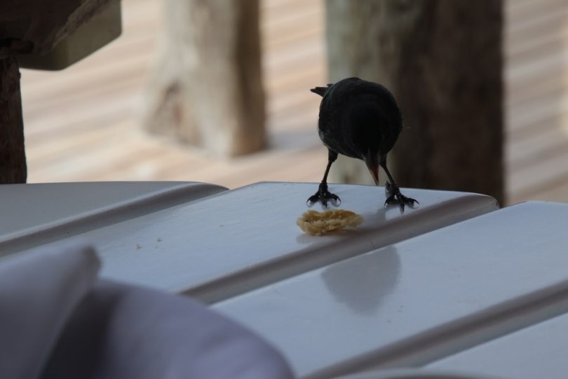 After a while we head back and spot a few more birds and we decide to stay at a little hotel restaurant down at the water to have lunch before we head to the other side. As we are eating a few birds show up to try to get some of scraps.