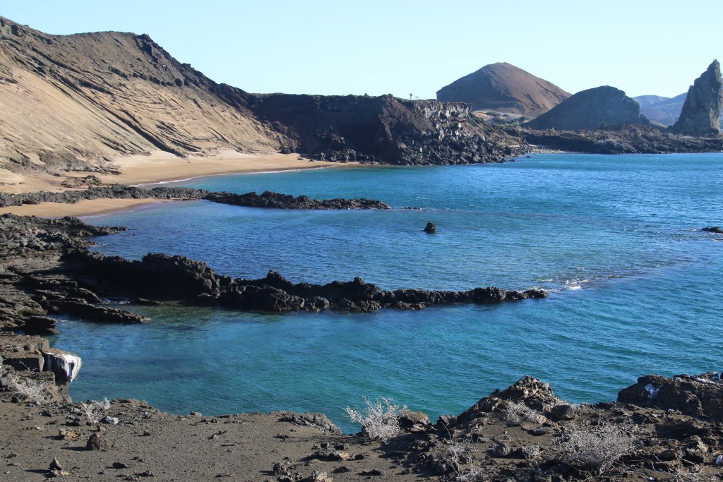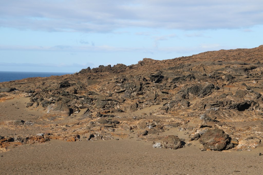 The ship has sailed the fairly short distance from Rabida Island to Bartolomé Island while we had lunch and a little time to relax after the lunch. And now it is time to go back on land and explore the island. We first go onto the island which is a bit hilly and we across the island.