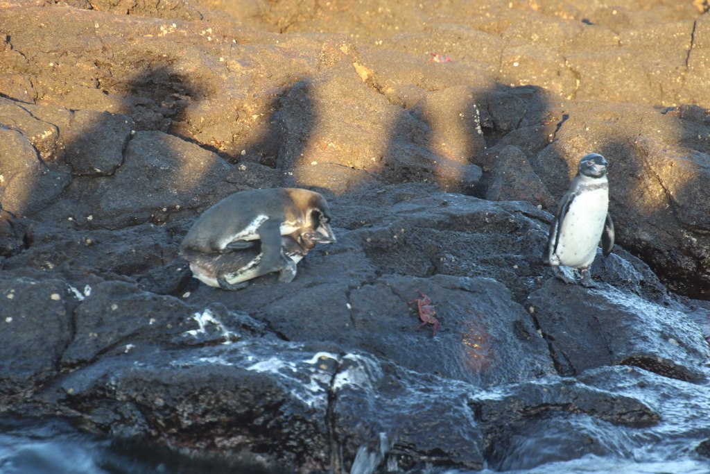 And just as we are sailing by a couple of penguin decide the penguin population on the Galapagos is too small so they will do their best to increase the numbers around the islands. We are not the only ones close to the act – there are another penguin standing only a few centimeters from the two busy penguins.