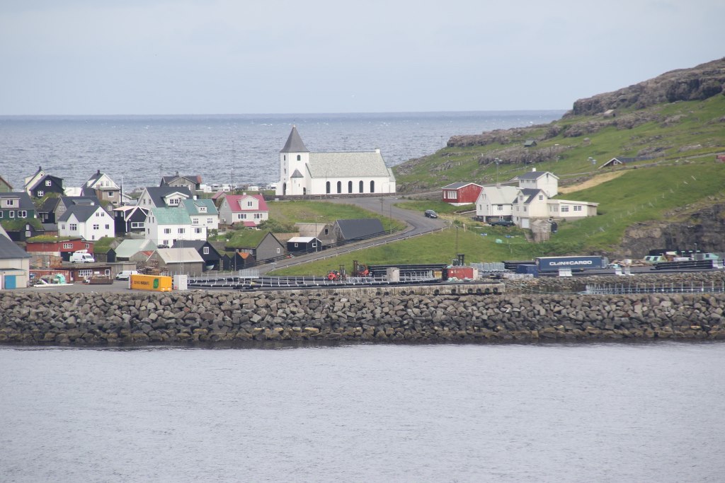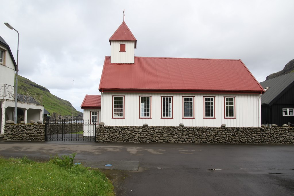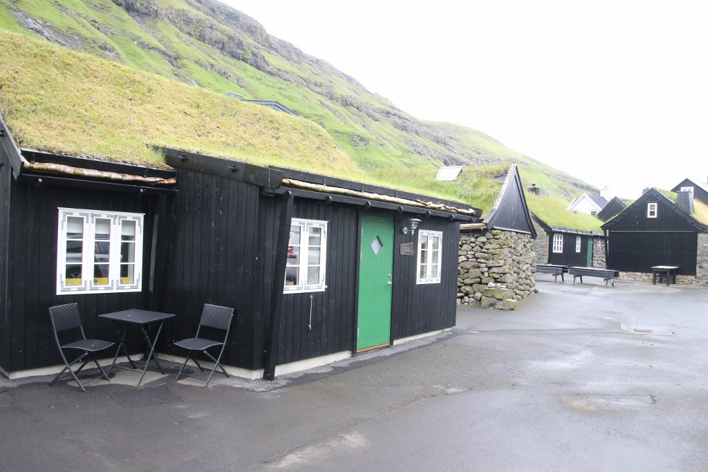 Finally we find sign claiming they sell waffles and coffee. We go inside – and it turns out it is an old man who make waffles in his kitchen and serve them at the kitchen table. The waffles are mediocre, small and overprices so we don’t enjoy this meal. But he is an old man who has lived in the town back when he was a child so he could tell a bit of how difficult it was to get around back then. There was no road so if he wanted to go to Torshavn he would have to walk over the mountain to a small village with a better harbor from where he could catch a boat to Eysturoy. It was before they had built Atlanterhavsbroen – so he would have to catch another boat which would take him to Torshavn – if he was lucky he might be able to do it in a day but sometimes it took two days to do the trip which can be done in an hour today.