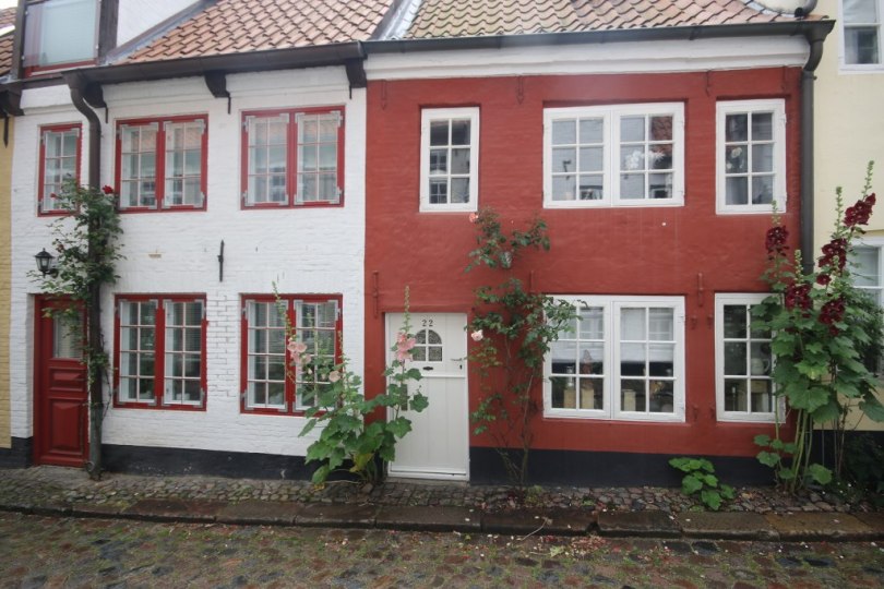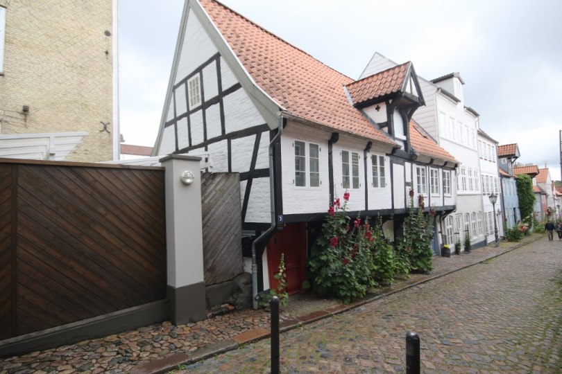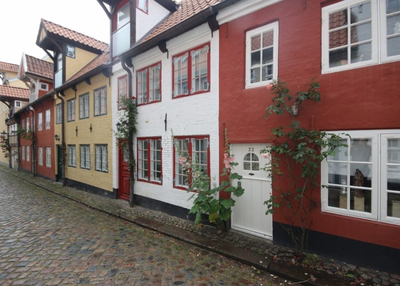 Today there is no sign the street being home to the ladies of the night. Instead it is a nice cobbles stoned street with some old houses on each side of the street. The houses have some flowers outside tall traditional roses which are so often seen in old Danish towns.