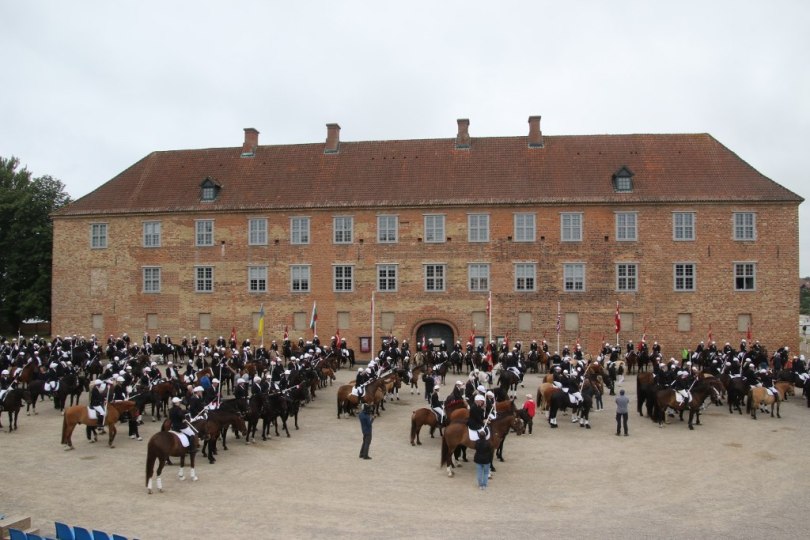 We reach the ground in front of the castle – hundreds of horses and riders has already gathered on the square in front of the castle getting ready to for the parade. A few riders are still arriving and the marching bands are walking down to the harbor in front of the castle to get ready for the march through the city.