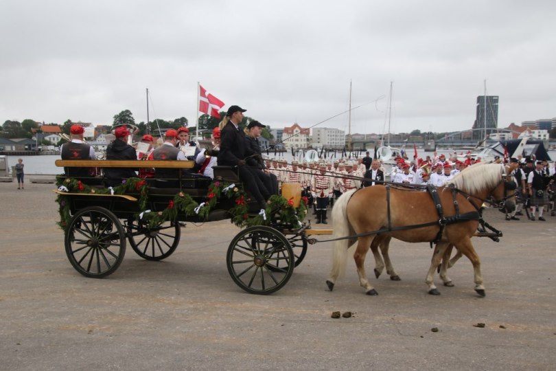 The biggest annual festival in Sønderborg is the ringridder festival. One of the highlights of the festival is when the ridders in the festival ride through the city on their horses followed by several marching bands. The festival is held during a weekend in early July and the horse parade start at 11 on the Sunday. So we have to get an fairly early breakfast before we head to the castle ground to see the start of the parade.