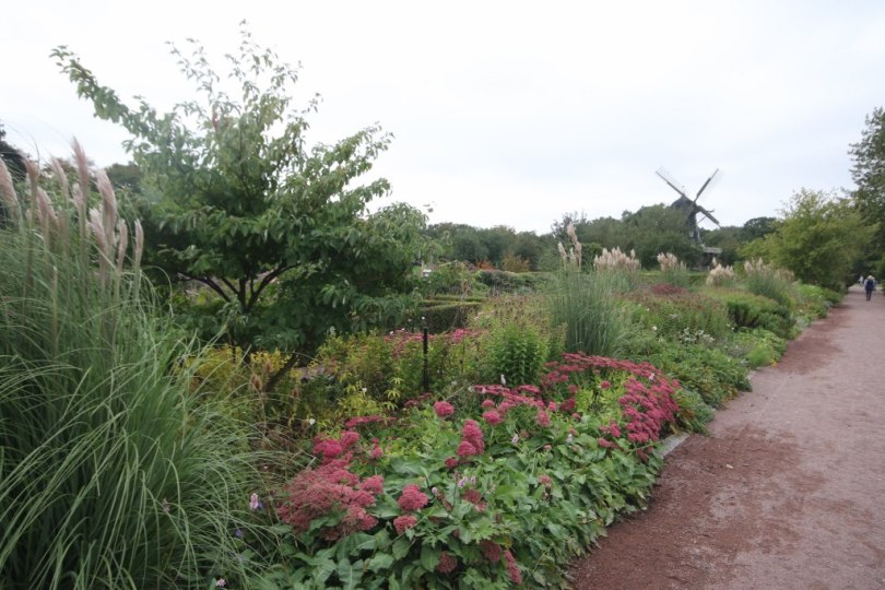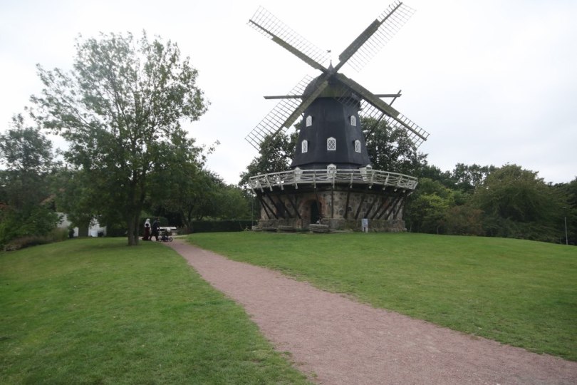 After walking through the garden we reach a small windmill which is called the castle park mill. It is on a little lawn and looks pretty on that location.