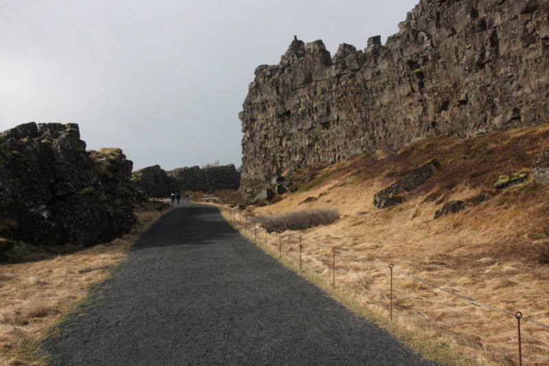 The area around Thingvellir is at a unique location. It is placed right at the foothill of the continental divide between America and Europe. Today when you go to the visitor center you arrive at the American side of the country – but from there you can just walk down the hill seeing a cliff on each side of you as you are walking one in America and one in Europe. When you get down the hill you will have left America and arrived in the old land of Europe. It isn’t every day I have the option to walk from one continent to another and you can really only do this in a handful of countries around the world.