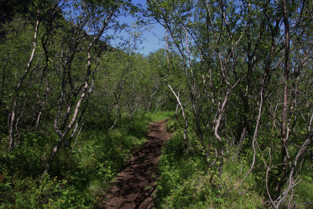 There is a fairly big canyon up here called the Asbyrgi Canyon. When you look at the slow flowing river up here it is a bit surprising it has been able to carve such a big canyon. Apparently the river isn’t always so slow flowing – whenever the volcano below the big glacier to the south erupts it create a lot of melted water which occasionally travels violently to the north through this canyon – and when the water flows in those large quantities it manage to carve a canyon surprisingly fast.