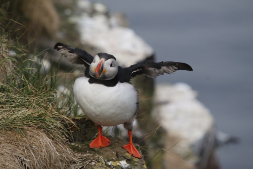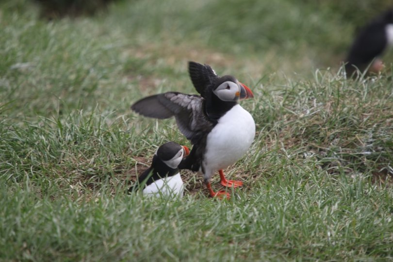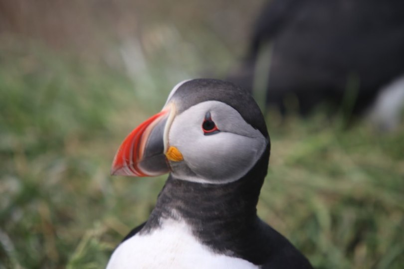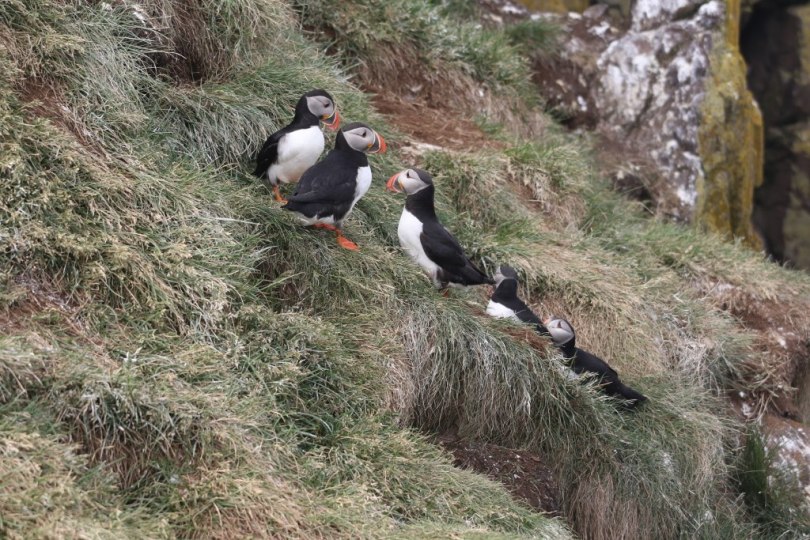 Behind the harbor is a small hill and everybody go there. The hill is home to not one, not two, not ten, not a hundred but thousands of puffins who go here to dig a hole in the hill and lay their eggs. We walk up the hill along a small stair which is put in place to protect the hill and the puffin from being stepped on by the tourist coming to enjoy the small birds.