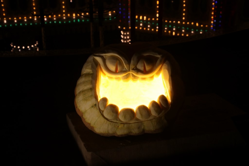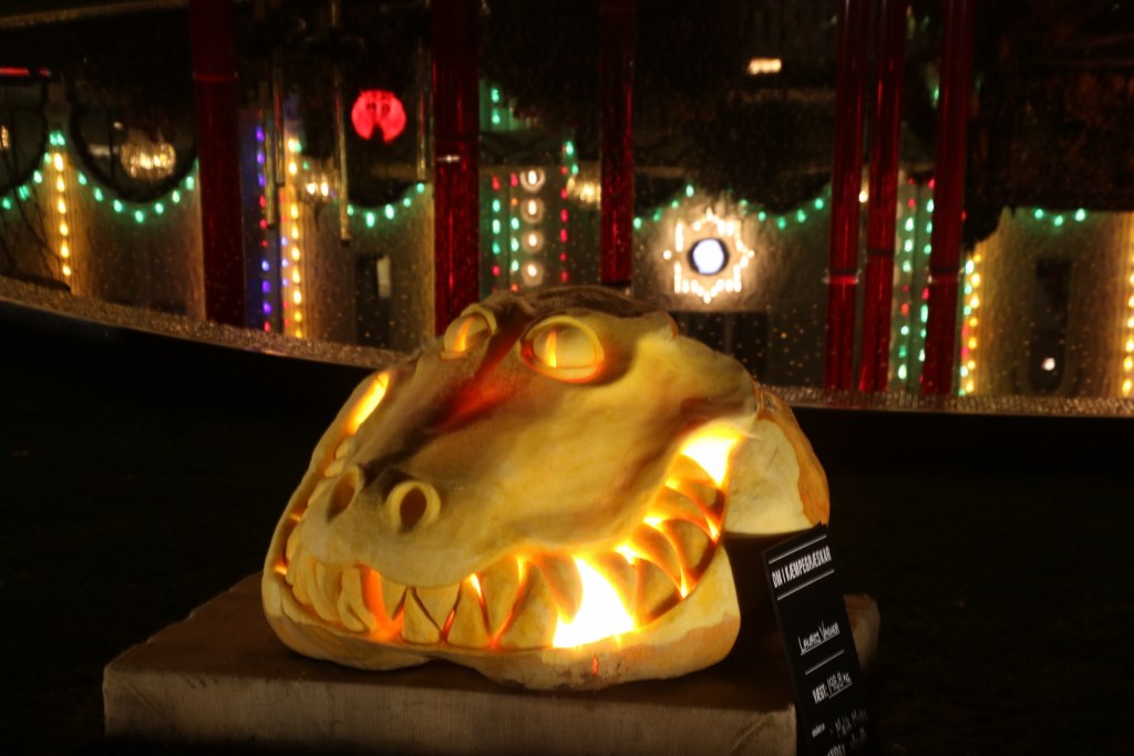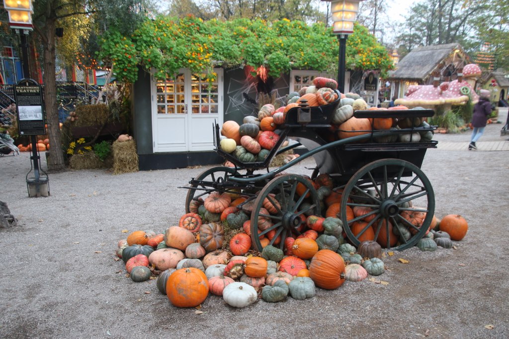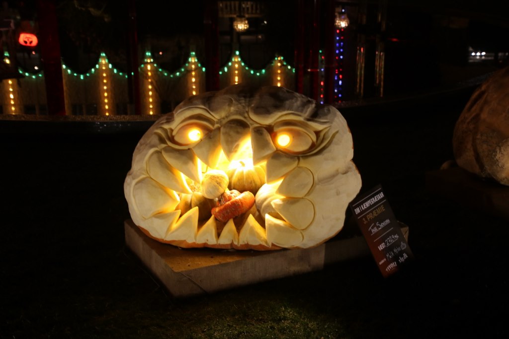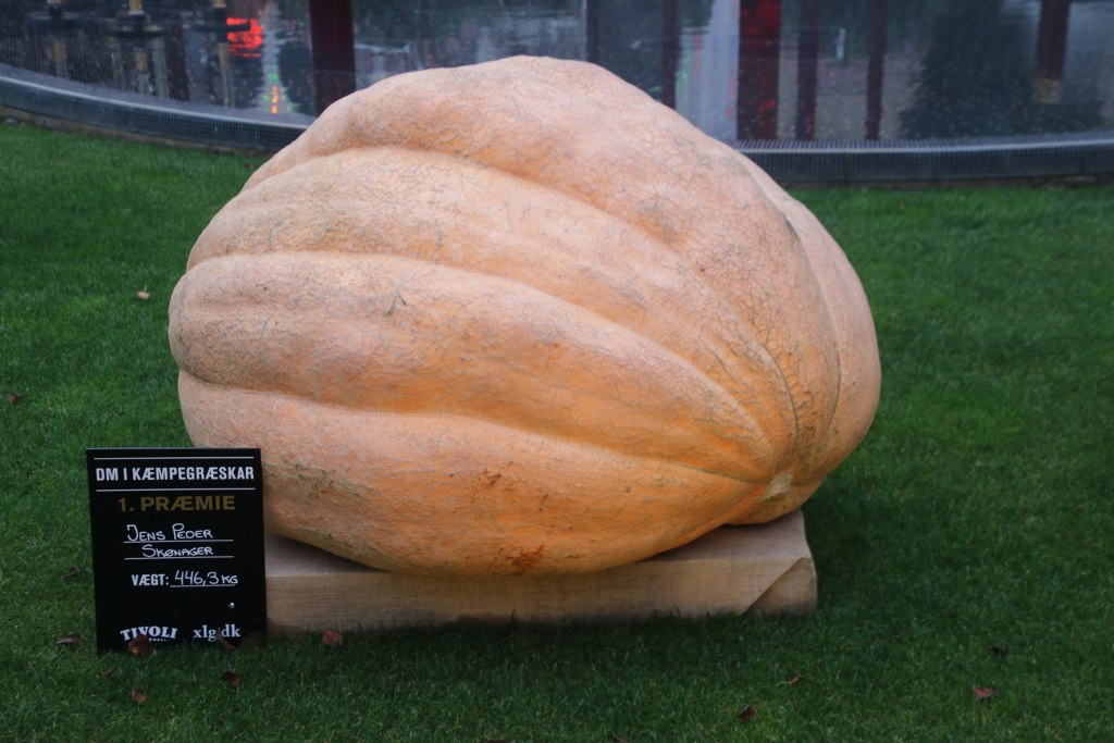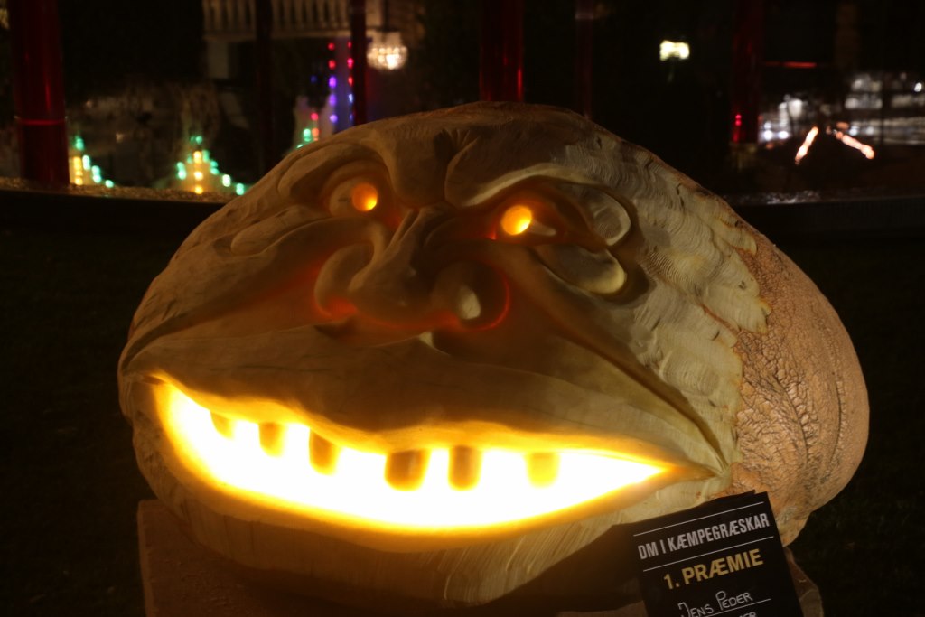 A special feature during Halloween was the pumpkin competition where the biggest pumpkin of the year in Denmark was crowned as champion. The ten biggest pumpkins were on display – even the smallest were way heavier than me and the winner weighed in at almost half a ton. During the opening period there was a completion of cutting the pumpkin – which we didn’t know so we didn’t go. But we did see the cut pumpkins a few days later.