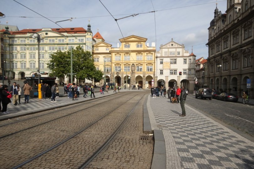 After we have some traditional Czech food for lunch followed by some beers we go back out in the sunny fall of Prague. We head down towards the castle of the city. On the way down to the castle we pass through a nice street and square where the richest people of Prague used to live so they could be close to the ruler of the area. They did live in very nice houses making the houses on the road to the castle the nicest collection of high class mansions in Prague.