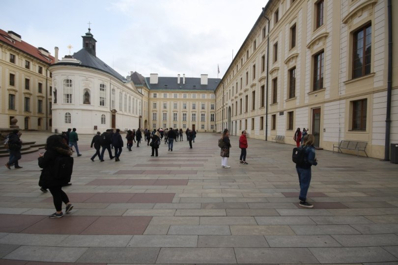 The security at the Prague castle has increased since I went here last time many years ago. You can no longer just walk inside the castle ground – you have to go through an airport style security check with metal detectors before you are allowed inside the castle area. Fortunately they haven’t put in a fee to enter when they put up the metal detectors so it is still free to go in and wonder the outside area of the castle. You do have to pay if you want to go inside the buildings and see the museums and churches of the area. We don’t have that much time so we just stay outside.