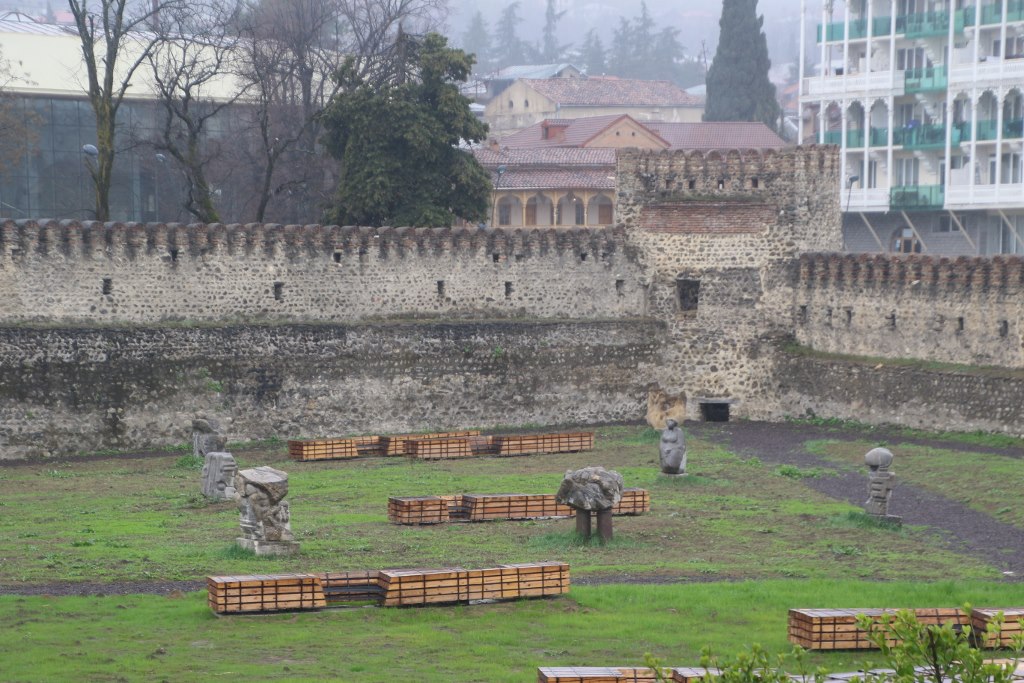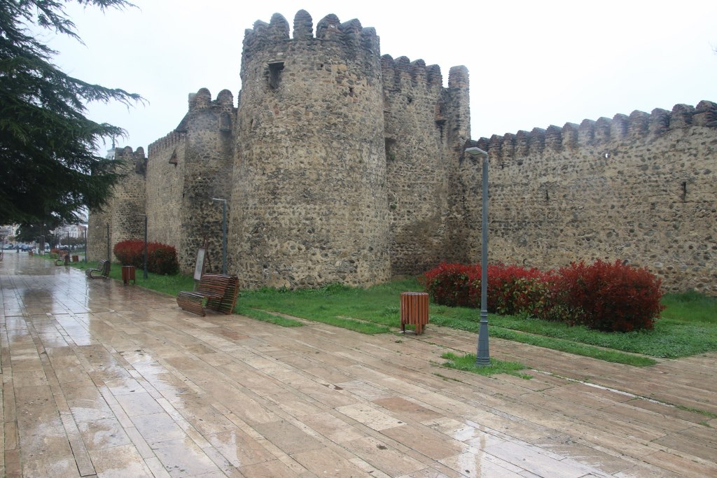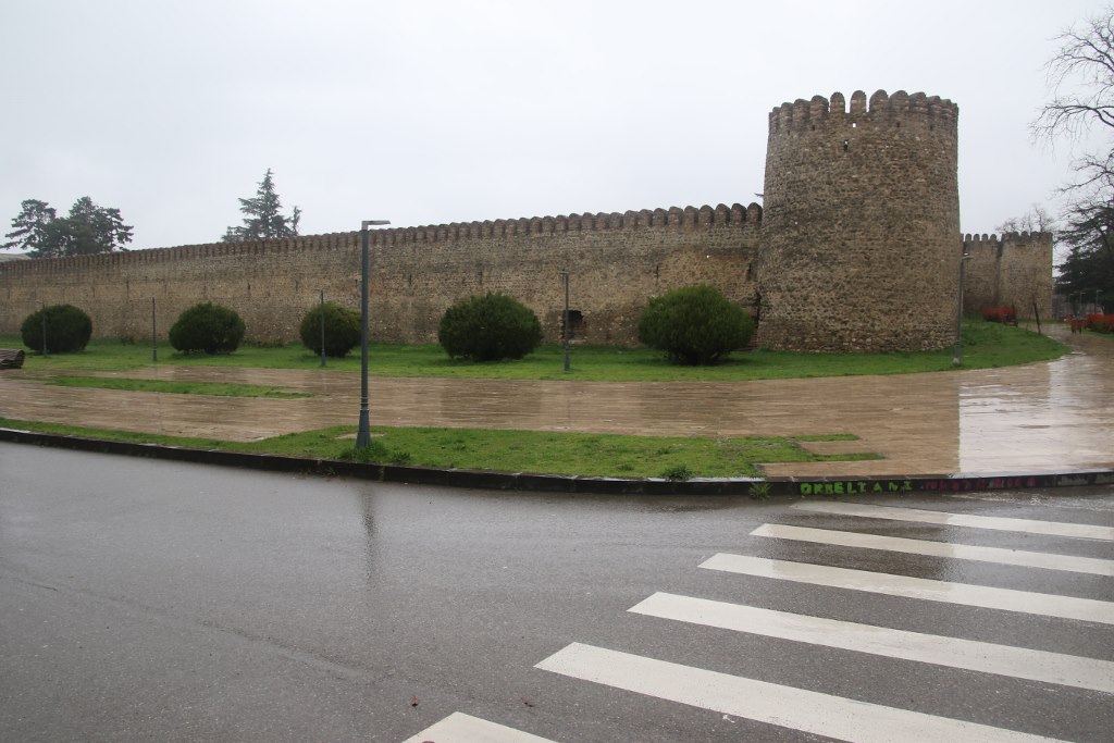 We walk from the little guest house to the main attraction of the town and old walled area with a church inside. We manage to find a gate which we think give us access to the area with the church. When we walk inside there isn’t really access to a church. We go in and inside the walls is a big building which isn’t all that interesting. The big building is some sort of school according to the sign we see on the wall. We have a look around inside the walls and meet a couple of security guards – they tell us the grounds are closed because of renovation – but they let us walk around anyways.