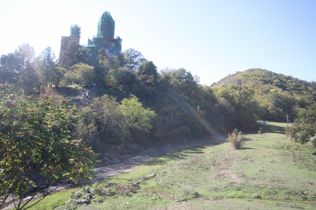 We are driving through the Kakheti country side in the main wine region of Georgia. It is a quite road without too many sights but we do stop for a little bit to take a photo of the Gremi fortress. Gremi was the capital of the Kakheti region from 1466 to 1672 but the heyday of the city ended and today only a bit of ruins remain. The city was devastated by an attack of a Persian shah.