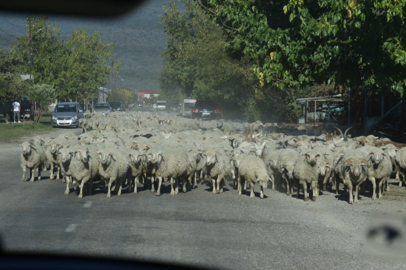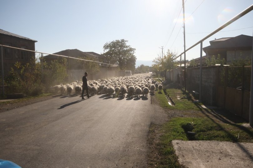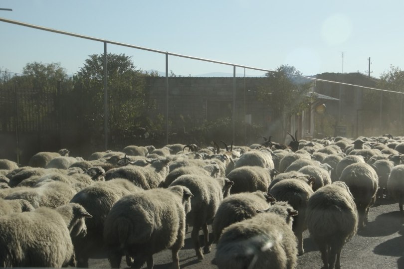 We drive very slowly forward and one of the shepherds are making signs to us – we are not sure if he wants us to stay behind the sheep’s until they can get to side of the road or pass the sheep’s. After a bit we realize he wants us to drive pass the sheep’s.