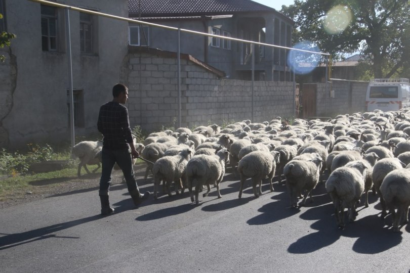 Suddenly the road in front of us is completely blocked. There is a huge flock of sheep’s heading home from the day up in the hills grassing. There is a lot of sheep’s and we have no idea how to get through since the sheep’s take up the whole width of the road and the side of the road as well. We don’t know what to do so we jump out the door and look at the many many sheep’s.