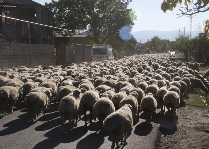 We drive very slowly forward and one of the shepherds are making signs to us – we are not sure if he wants us to stay behind the sheep’s until they can get to side of the road or pass the sheep’s. After a bit we realize he wants us to drive pass the sheep’s.