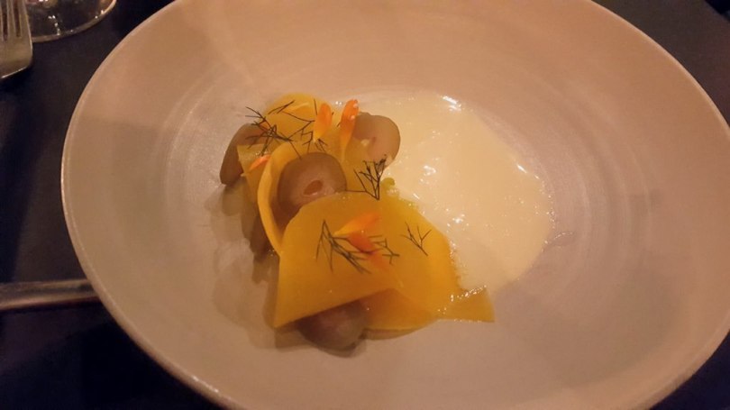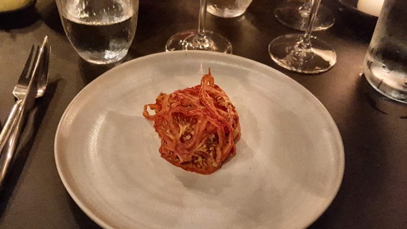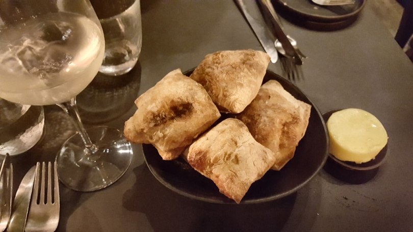 For the first snack we got fresh and delicious oyster, follow with prosciutto, crispy fish skin and bread.