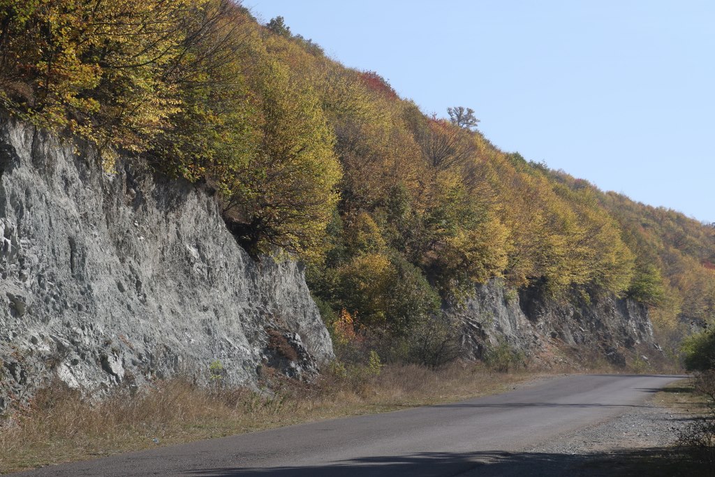 We drive through the Debed valley which is a pretty valley on the route to Yerevan. After a bit we decide to turn away from the most direct route and take another highway to Yerevan which will take us along the biggest lake in the country. Before we reach the lake we go through some hill with a lot of trees on them. The fall colours of the trees along the road are nice to look at so we stop for a bit to take in the view of the trees.
