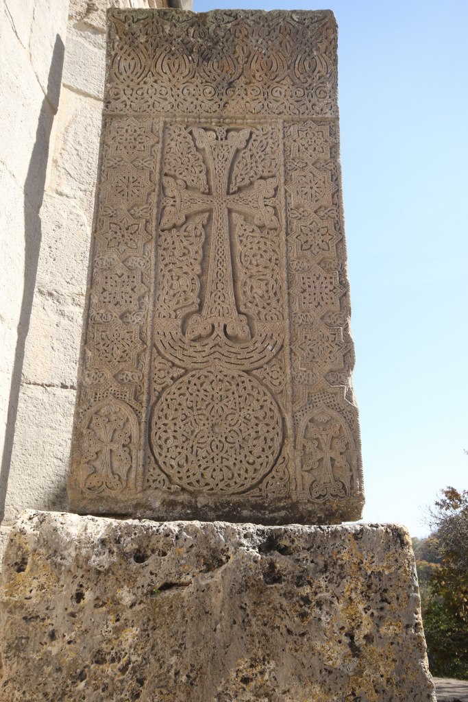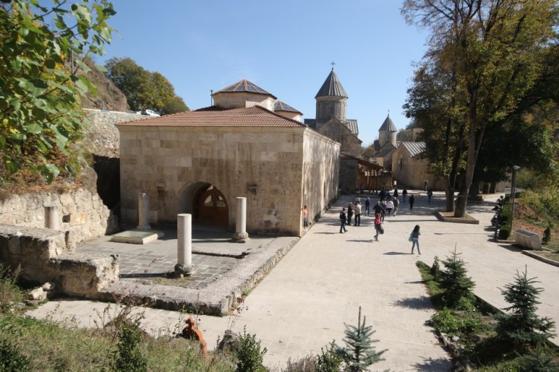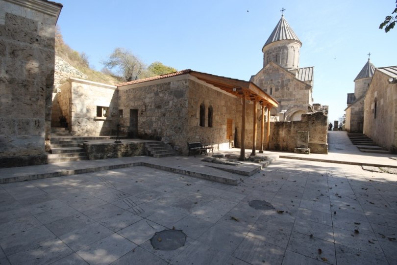 We go from the parking lot right across the road to a big monastery called the Haghartsin monastery. There aren’t a lot of people visiting the place when we arrive – but there is a bus load of tourist arriving just after us. So we hurry to explore the monastery while they are listing to their Italian speaking guide.