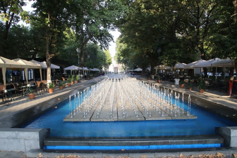 Most of the streets in the center are pretty big with a lot of traffic making the city a not so pleasant place to go for a stroll. Fortunately there are some nice spots like the park between the two roads leading down to the main Republic Square of the city. It seems like the locals really use this area when it is warm in the summer – there are a lot of outdoor cafes with options for drinks and food. We keep going through this area since it is right next to our hotel so we get an enjoyable walk to the republic square.
