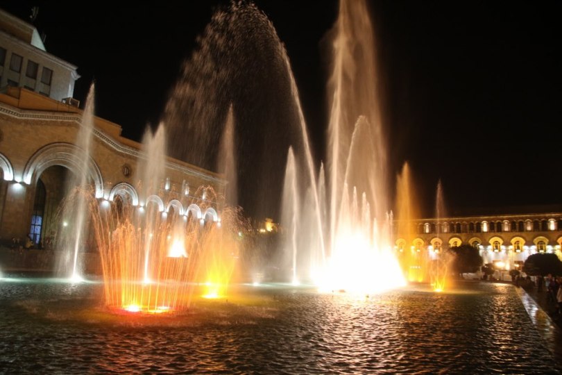 The Republic Square is one of the most interesting spots in Yerevan with some big nice buildings surrounding the square and a large fountain as the center piece of the square. It is nice to go here at night time and watch the fountain dancing in tune to music being played for a couple of hours from around 8 to 10.