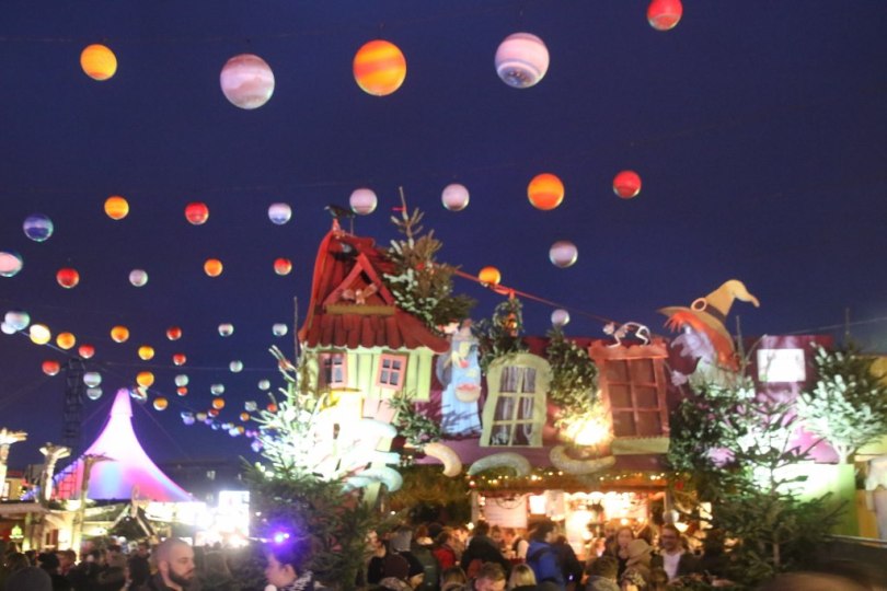 The market has a bit more variety when it comes to food since it serves a large variety of other fast food that you don’t usually see at the Christmas markets. The area huge but it is actually crowded so it seems like half of Munich population has made it out here this Sunday night.