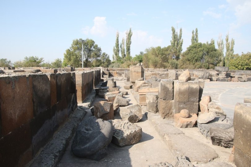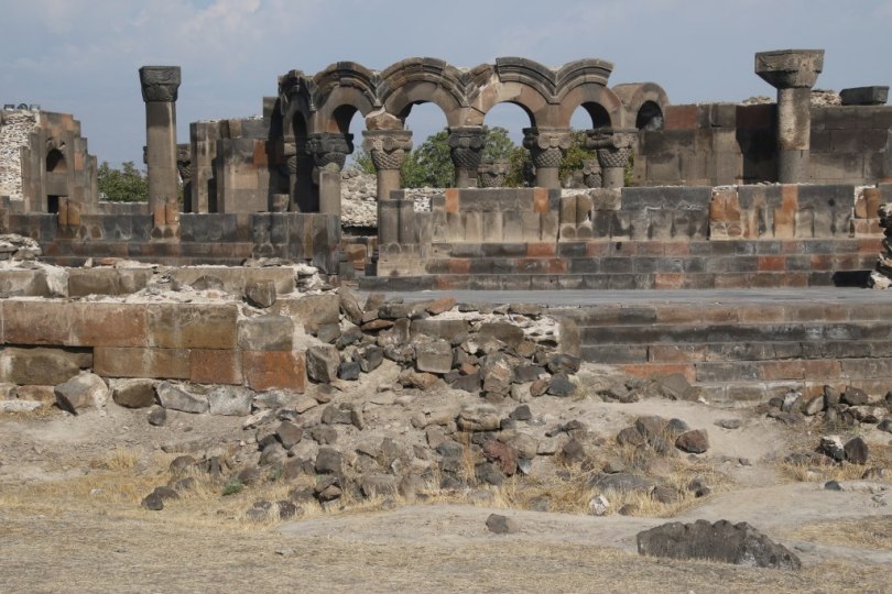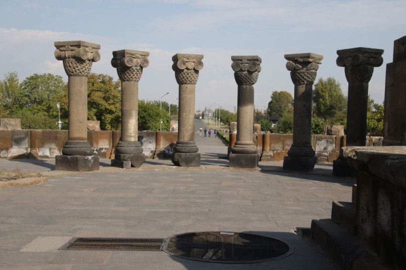 We have sort of come towards the end of our trip around Armenia and we have to start driving back towards Georgia to return the car and catch our flight. Fortunately we still have a little time left so we don’t have to take the main highway north from Yerevan towards Tbilisi. Instead we drive west towards the city of Echmiadzin. On the way to the small town we drive by the ancient cathedral of Zvartnots.