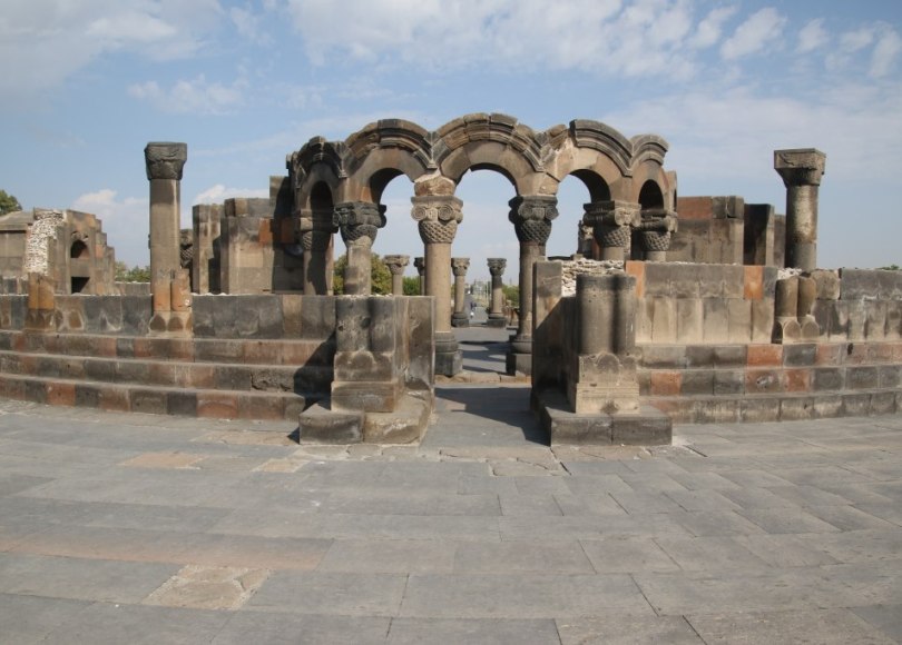 We have sort of come towards the end of our trip around Armenia and we have to start driving back towards Georgia to return the car and catch our flight. Fortunately we still have a little time left so we don’t have to take the main highway north from Yerevan towards Tbilisi. Instead we drive west towards the city of Echmiadzin. On the way to the small town we drive by the ancient cathedral of Zvartnots.