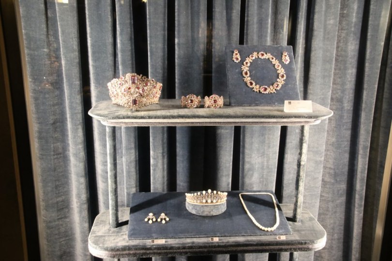 At the large royal residence of Munich there is a large treasure as well. The treasure contains a large collection of pressures items from the king of Bavaria and it is open to visit for the general public. We went there on a combined ticket with the castle museum and the next door Cuvillies Theater. The treasure is considered one of the most significant collections of pressures jewelry in all. The audio guide at the museum mentioned this one and the museum in Dresden as the most important locations – I guess they didn’t have time to update the audio guide after the heist of the Dresden museum when thieves stole a large portion of the jewelry.