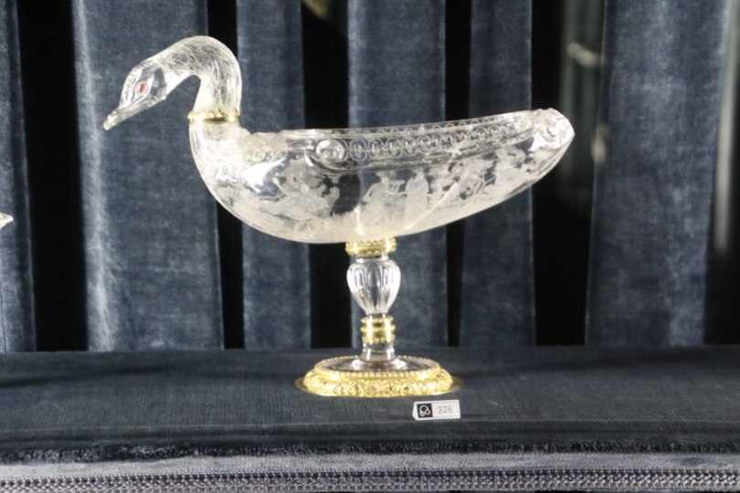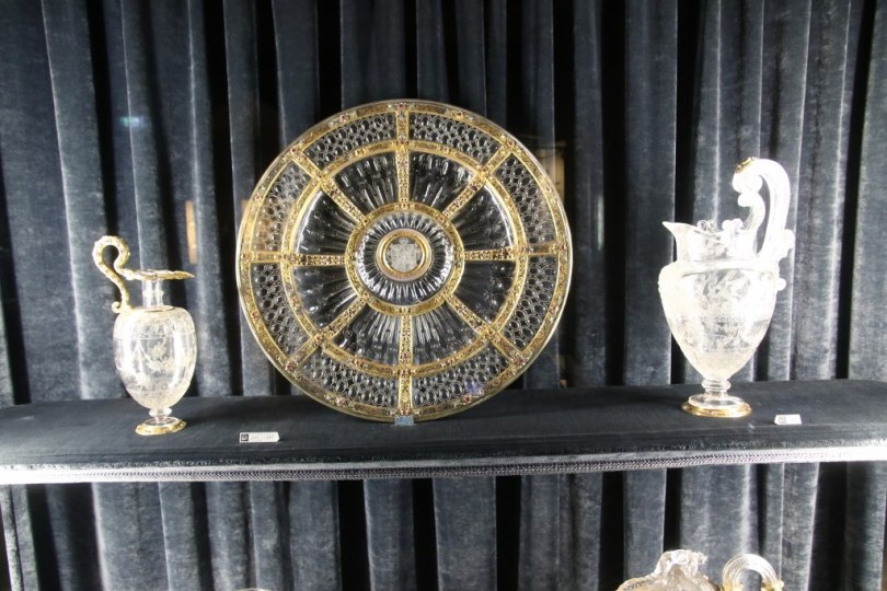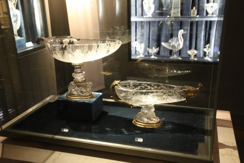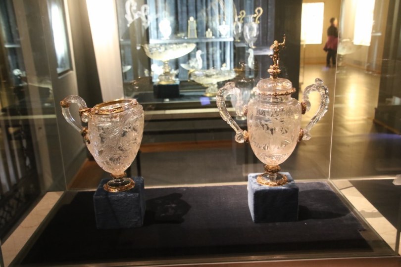One room contains a large collection which looks like it is glass. But in fact it isn’t glass – it is a special rock crystal which has been carefully cut to make it into different containers of the rock. I like these rock crystals – it is so surprising to see a rock made into something like this.