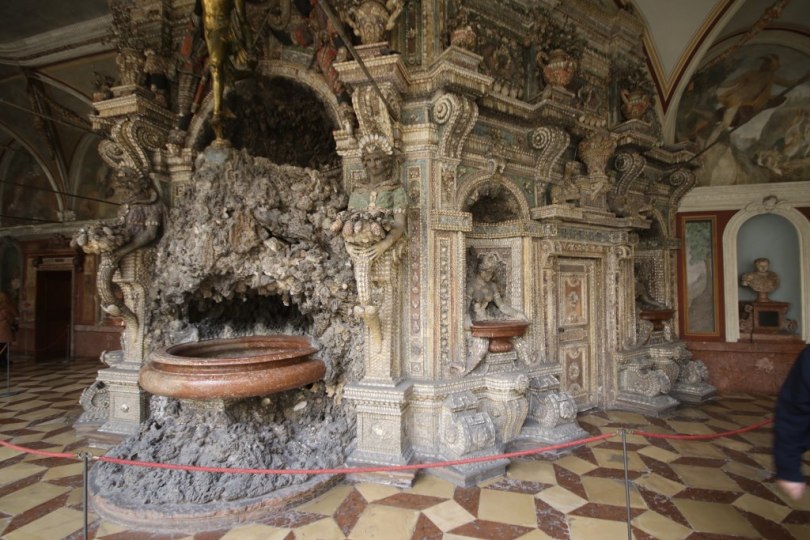 I guess the most impressive part of the castle is actually in the beginning where we start in an old grotto courtyard which is some of the oldest part of the castle. It is built in old style with some strange looking ornament around a large fountain – which currently has no water running.